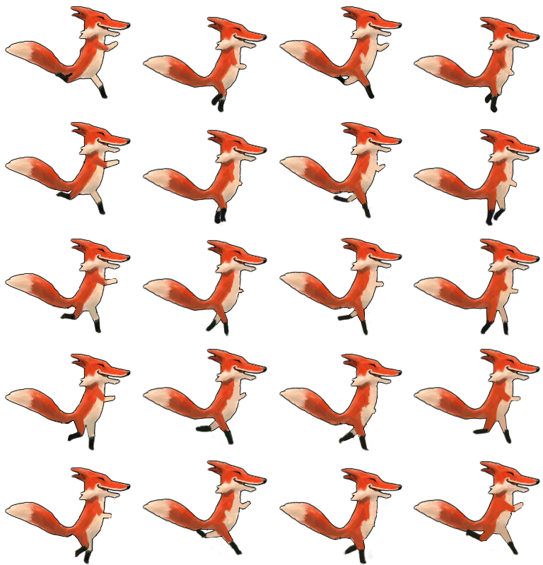 run_frames.png has the running animation for the character. It has 20 frames. The frames progress from up to down, and the columns are from left to right.
